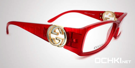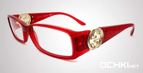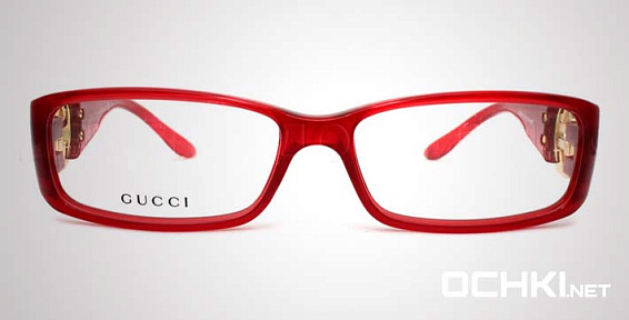 Прямоугольные очки, из материала пластик и цвете красный помогут понять основные черты новой коллекции оправ модного бренда GUCCI.
