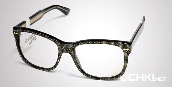 Прямоугольные очки, из материала пластик и цвете черный помогут понять основные черты новой коллекции оправ модного бренда GUCCI.