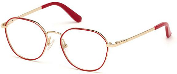 Прямоугольные очки, из материала традиционные металлы и цвете красный помогут понять основные черты новой коллекции оправ модного бренда GUESS.