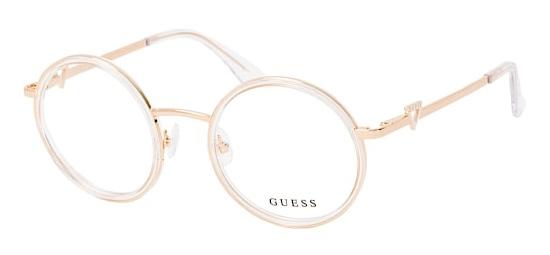 Круглые очки, из материала традиционные металлы и цвете золото помогут понять основные черты новой коллекции оправ модного бренда GUESS.