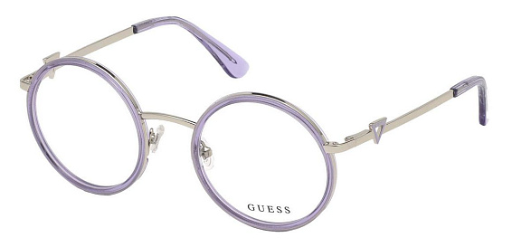 Круглые очки, из материала пластик и цвете серебро помогут понять основные черты новой коллекции оправ модного бренда GUESS.