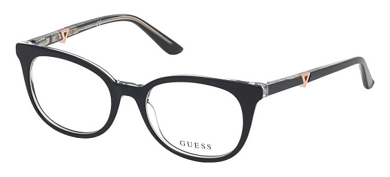 Прямоугольные очки, из материала пластик и цвете черный помогут понять основные черты новой коллекции оправ модного бренда GUESS.