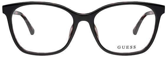 Овальные очки, из материала пластик и цвете черный помогут понять основные черты новой коллекции оправ модного бренда GUESS.