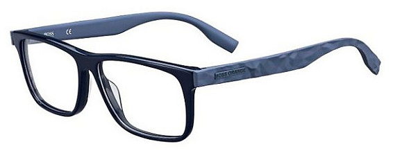 Прямоугольные очки, из материала пластик и цвете синий помогут понять основные черты новой коллекции оправ модного бренда HUGO BOSS.