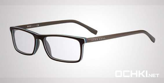 Прямоугольные очки, из материала пластик и цвете коричневый помогут понять основные черты новой коллекции оправ модного бренда HUGO BOSS.