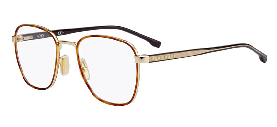 Прямоугольные очки, из материала традиционные металлы и цвете золото помогут понять основные черты новой коллекции оправ модного бренда HUGO BOSS.