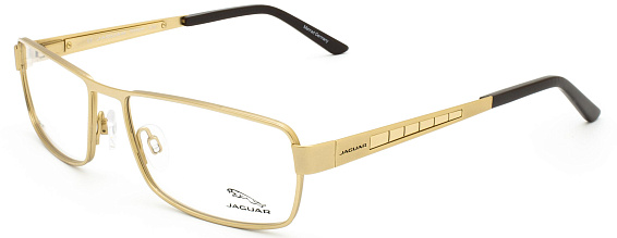 Прямоугольные очки, из материала традиционные металлы и цвете золото помогут понять основные черты новой коллекции оправ модного бренда JAGUAR.