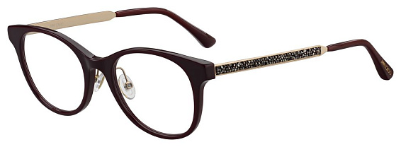 Круглые очки, из материала пластик и цвете бордовый помогут понять основные черты новой коллекции оправ модного бренда JIMMY CHOO.