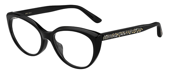 Кошачий глаз очки, из материала пластик и цвете черный помогут понять основные черты новой коллекции оправ модного бренда JIMMY CHOO.