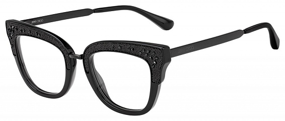 Клабмастер очки, из материала пластик и цвете черный помогут понять основные черты новой коллекции оправ модного бренда JIMMY CHOO.