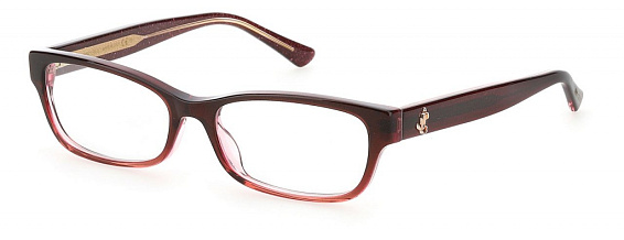 Овальные очки, из материала пластик и цвете бордовый помогут понять основные черты новой коллекции оправ модного бренда JIMMY CHOO.