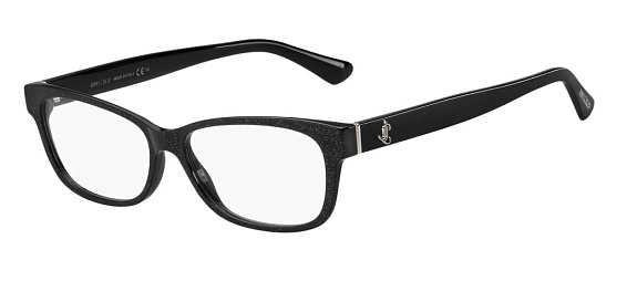 Прямоугольные очки, из материала пластик и цвете черный помогут понять основные черты новой коллекции оправ модного бренда JIMMY CHOO.