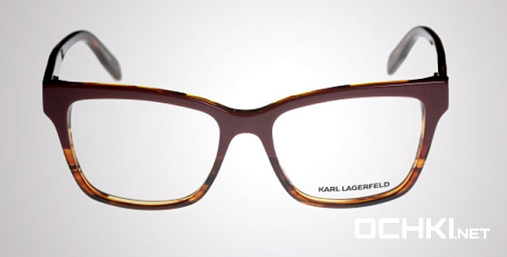 Прямоугольные очки, из материала пластик и цвете коричневый помогут понять основные черты новой коллекции оправ модного бренда KARL LAGERFELD.