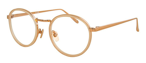 Овальные очки, из материала пластик и цвете золото помогут понять основные черты новой коллекции оправ модного бренда LINDA FARROW.