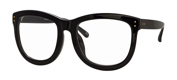 Прямоугольные очки, из материала пластик и цвете черный помогут понять основные черты новой коллекции оправ модного бренда LINDA FARROW.
