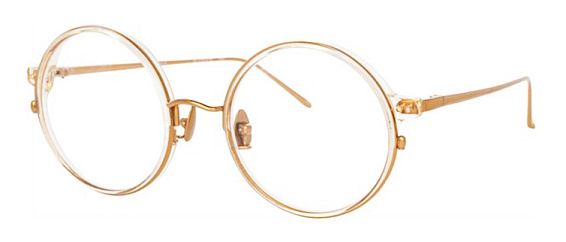 Круглые очки, из материала титан и цвете золото помогут понять основные черты новой коллекции оправ модного бренда LINDA FARROW.