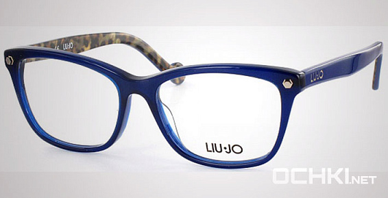 Прямоугольные очки, из материала пластик и цвете синий помогут понять основные черты новой коллекции оправ модного бренда LIU JO.
