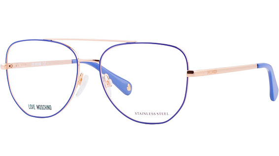 Авиатор очки, из материала традиционные металлы и цвете синий помогут понять основные черты новой коллекции оправ модного бренда LOVE MOSCHINO.