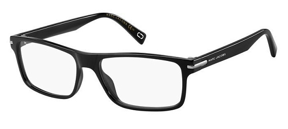 Прямоугольные очки, из материала пластик и цвете черный помогут понять основные черты новой коллекции оправ модного бренда MARC JACOBS.