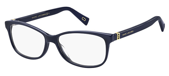 Прямоугольные очки, из материала пластик и цвете синий помогут понять основные черты новой коллекции оправ модного бренда MARC JACOBS.