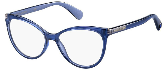 Прямоугольные очки, из материала пластик и цвете синий помогут понять основные черты новой коллекции оправ модного бренда MARC JACOBS.