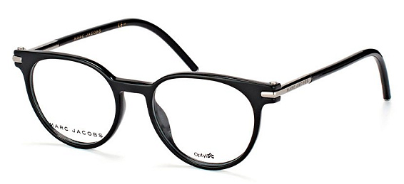 Овальные очки, из материала пластик и цвете черный помогут понять основные черты новой коллекции оправ модного бренда MARC JACOBS.