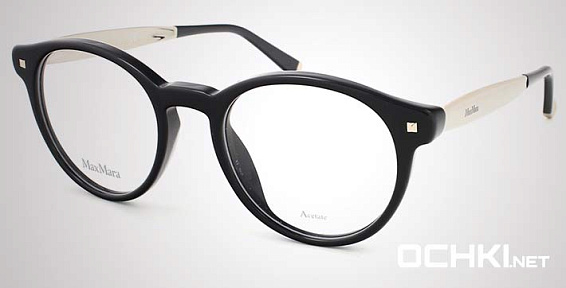 Круглые очки, из материала пластик и цвете черный помогут понять основные черты новой коллекции оправ модного бренда MAX MARA.