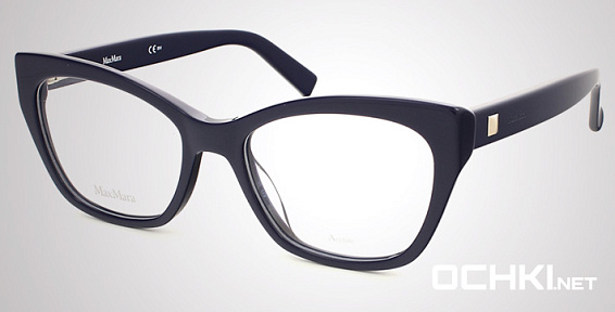 Кошачий глаз очки, из материала пластик и цвете синий помогут понять основные черты новой коллекции оправ модного бренда MAX MARA.
