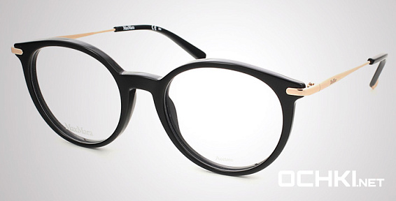Овальные очки, из материала пластик и цвете черный помогут понять основные черты новой коллекции оправ модного бренда MAX MARA.