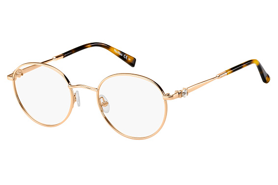 Прямоугольные очки, из материала традиционные металлы и цвете золото помогут понять основные черты новой коллекции оправ модного бренда MAX MARA.
