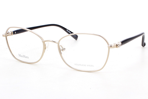 Овальные очки, из материала традиционные металлы и цвете черный помогут понять основные черты новой коллекции оправ модного бренда MAX MARA.