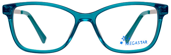 Прямоугольные очки, из материала пластик и цвете зеленый помогут понять основные черты новой коллекции оправ модного бренда MEGASTAR.