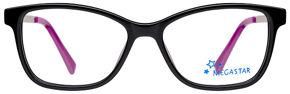 Прямоугольные очки, из материала пластик и цвете черный помогут понять основные черты новой коллекции оправ модного бренда MEGASTAR.