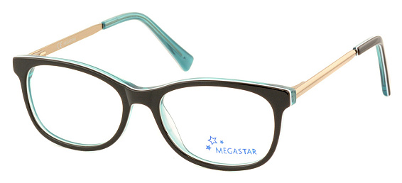 Прямоугольные очки, из материала пластик и цвете черный помогут понять основные черты новой коллекции оправ модного бренда MEGASTAR.