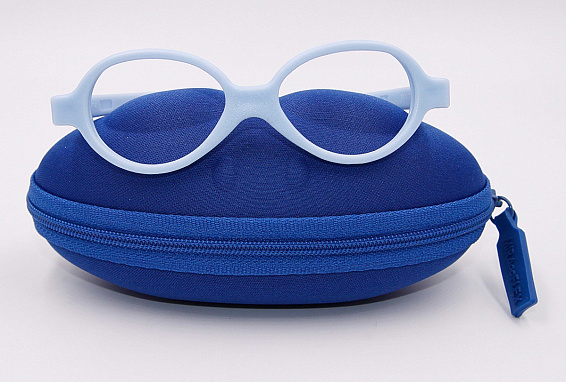 Овальные очки, из материала пластик и цвете голубой помогут понять основные черты новой коллекции оправ модного бренда MIRAFLEX.