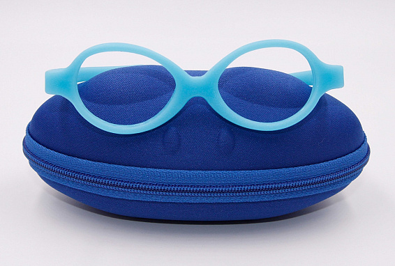 Овальные очки, из материала пластик и цвете голубой помогут понять основные черты новой коллекции оправ модного бренда MIRAFLEX.