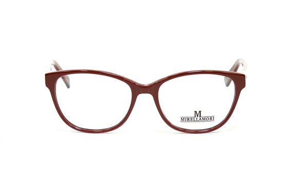 Овальные очки, из материала пластик и цвете бордовый помогут понять основные черты новой коллекции оправ модного бренда MIRELLA MORI.