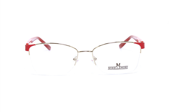Прямоугольные очки, из материала традиционные металлы и цвете красный помогут понять основные черты новой коллекции оправ модного бренда MIRELLA MORI.