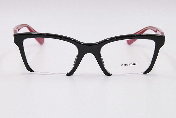 Прямоугольные очки, из материала пластик и цвете черный помогут понять основные черты новой коллекции оправ модного бренда MIU MIU.