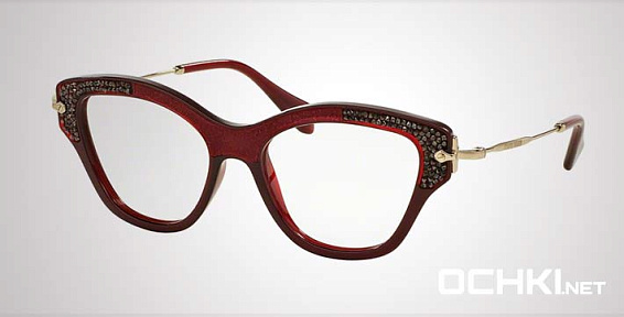 Кошачий глаз очки, из материала пластик и цвете золото помогут понять основные черты новой коллекции оправ модного бренда MIU MIU.