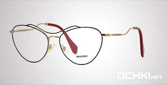 Кошачий глаз очки, из материала традиционные металлы и цвете черный помогут понять основные черты новой коллекции оправ модного бренда MIU MIU.