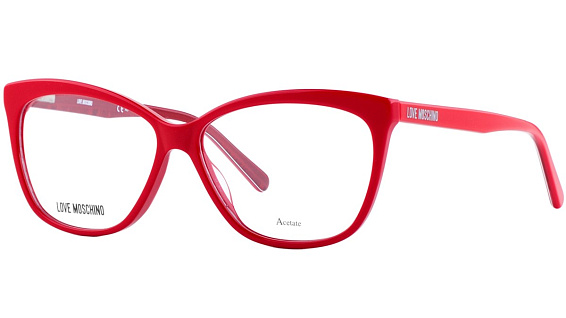 Кошачий глаз очки, из материала пластик и цвете красный помогут понять основные черты новой коллекции оправ модного бренда MOSCHINO.