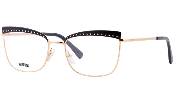 Прямоугольные очки, из материала традиционные металлы и цвете черный помогут понять основные черты новой коллекции оправ модного бренда MOSCHINO.