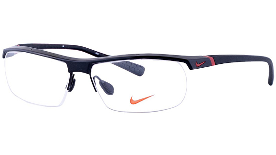 Прямоугольные очки, из материала пластик и цвете черный помогут понять основные черты новой коллекции оправ модного бренда NIKE.