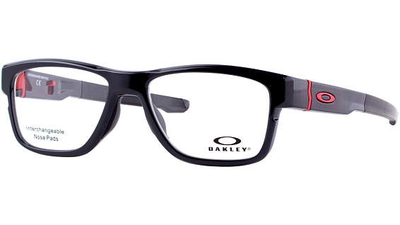 Прямоугольные очки, из материала пластик и цвете черный помогут понять основные черты новой коллекции оправ модного бренда OAKLEY.
