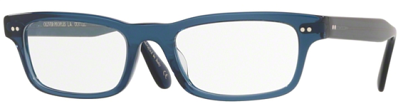 Прямоугольные очки, из материала пластик и цвете синий помогут понять основные черты новой коллекции оправ модного бренда OLIVER PEOPLES.