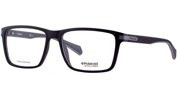 Прямоугольные очки, из материала пластик и цвете черный помогут понять основные черты новой коллекции оправ модного бренда POLAROID.