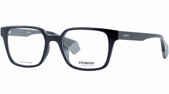 Прямоугольные очки, из материала пластик и цвете черный помогут понять основные черты новой коллекции оправ модного бренда POLAROID.