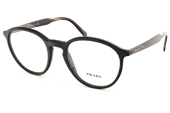 Прямоугольные очки, из материала пластик и цвете черный помогут понять основные черты новой коллекции оправ модного бренда PRADA.