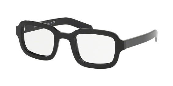 Прямоугольные очки, из материала пластик и цвете черный помогут понять основные черты новой коллекции оправ модного бренда PRADA.